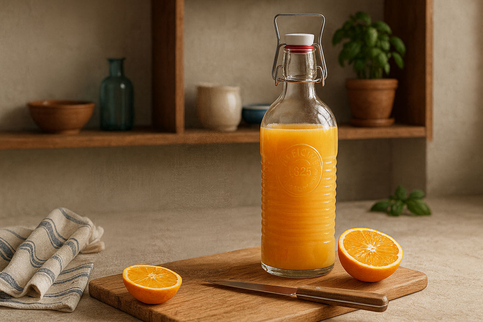 De serie „Officina 1825“ staat voor Italiaans vakmanschap en hoogwaardige afwerking. Gemaakt van eersteklas kwaliteitsglas van Bormioli Rocco, overtuigt het door zijn markante streepreliëf en de elegante opdruk „Officina 1825“. Deze stijlvolle beugelsluitingfles combineert klassieke esthetiek met moderne functionaliteit. Verkrijgbaar in volumes van 750 tot 1200 ml, biedt het voldoende ruimte voor diverse dranken. Vooral praktisch: de beugelsluiting kan ook als handvat worden gebruikt, wat het hanteren vergemakkelijkt en de fles een uniek karakter geeft.