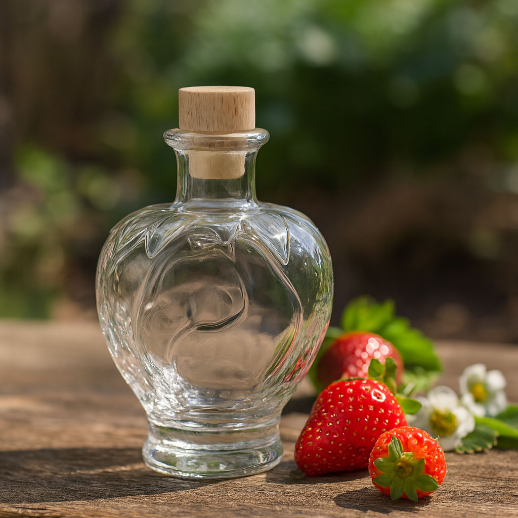 De motieffles „Aardbei“ overtuigt met zijn charmante, gedetailleerde ontwerp en brengt de zoetheid en frisheid van de populaire zomerfruit in een elegante glazen vorm. Gemaakt van hoogwaardig helder glas, is hij perfect geschikt voor fijne sterke dranken, fruitige brandewijnen of exclusieve likeuren. Het harmonieus gestructureerde oppervlak doet denken aan de natuurlijke textuur van een aardbei en maakt de fles tot een echte blikvanger. Dankzij de kurkafsluiting kan de inhoud veilig en stijlvol worden afgesloten.