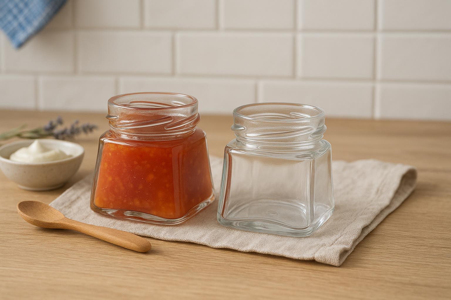 Het vierkante glas Luxor valt op door zijn unieke vormgeving: met een rechthoekige basis die naar boven toe overgaat in een ronde vorm, creëert het een bijzonder visueel effect. Dit bijzondere glasontwerp maakt het de perfecte keuze voor hoogwaardige crèmes en lotions, maar ook voor delicatessen zoals mosterd of jam. De Deep Twist-Off-monden DTO 58 en DTO 63 zorgen voor een veilige afsluiting – bijpassende sluitingen zijn verkrijgbaar in ons assortiment. Luxor combineert modern design met veelzijdige functionaliteit en presenteert elke inhoud stijlvol.