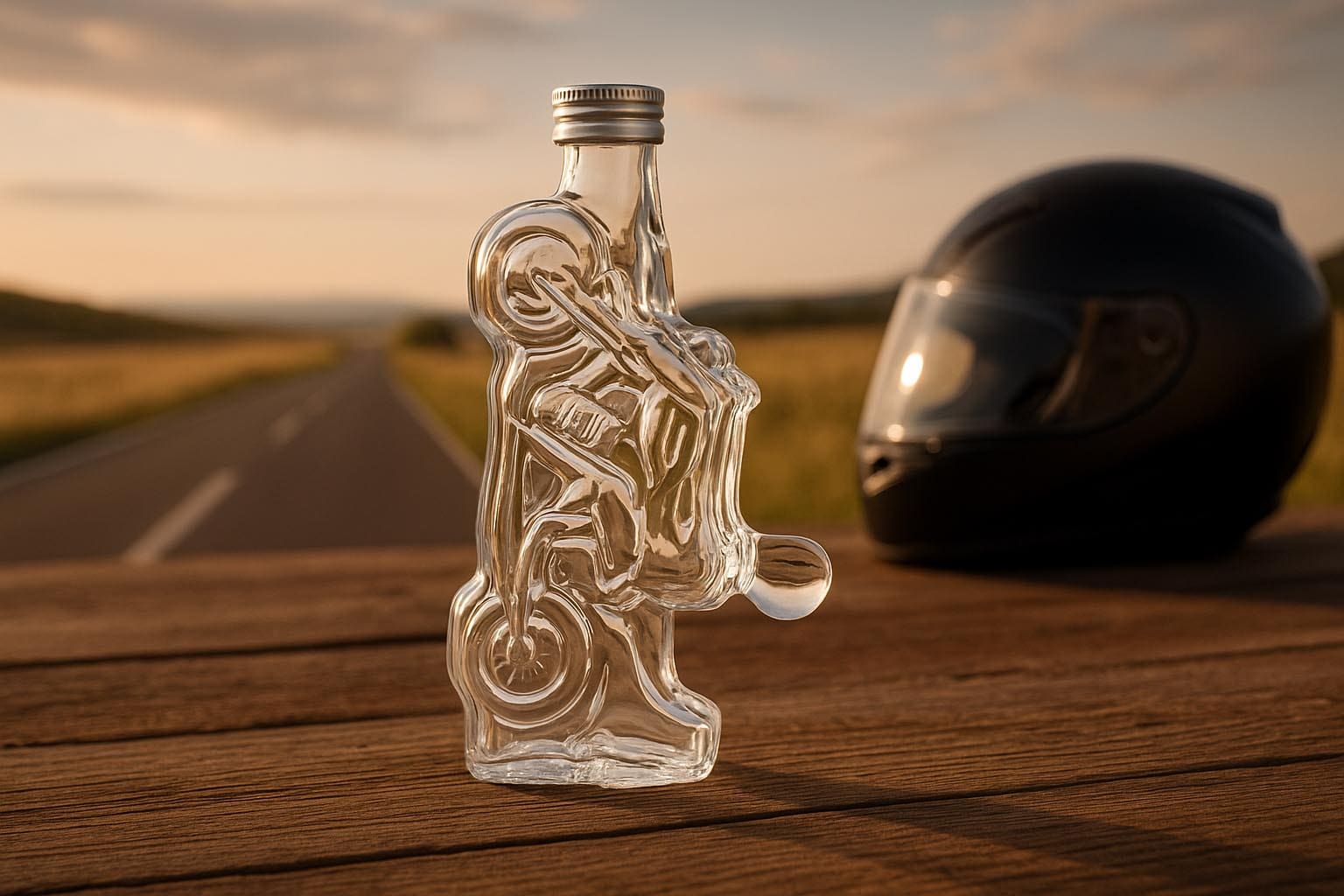 De motieffles „Motorfiets“ is een opvallende blikvanger die het gevoel van vrijheid en de fascinatie voor motorrijden omzet in een stijlvolle glazen fles. De gedetailleerde vormgeving maakt het de perfecte keuze voor iedereen die houdt van snelheid, avontuur en individualiteit. Gemaakt van hoogwaardig helder glas, biedt het een elegante verpakking voor sterke dranken, brandewijn, likeuren en andere bijzondere lekkernijen. De praktische opening in PP-28-formaat zorgt voor een eenvoudige bediening en een veilige afsluiting. Of het nu als cadeau voor motorliefhebbers is of als originele presentatiefles – de „Motorfiets“-fles combineert een markant design met functionele kwaliteit.