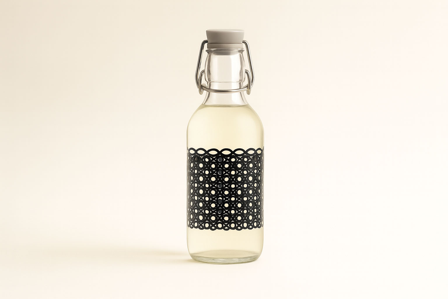 Bormioli Rocco 500 ml glazen fles 'Emilia', motief: Circola nero, opening: beugelsluiting