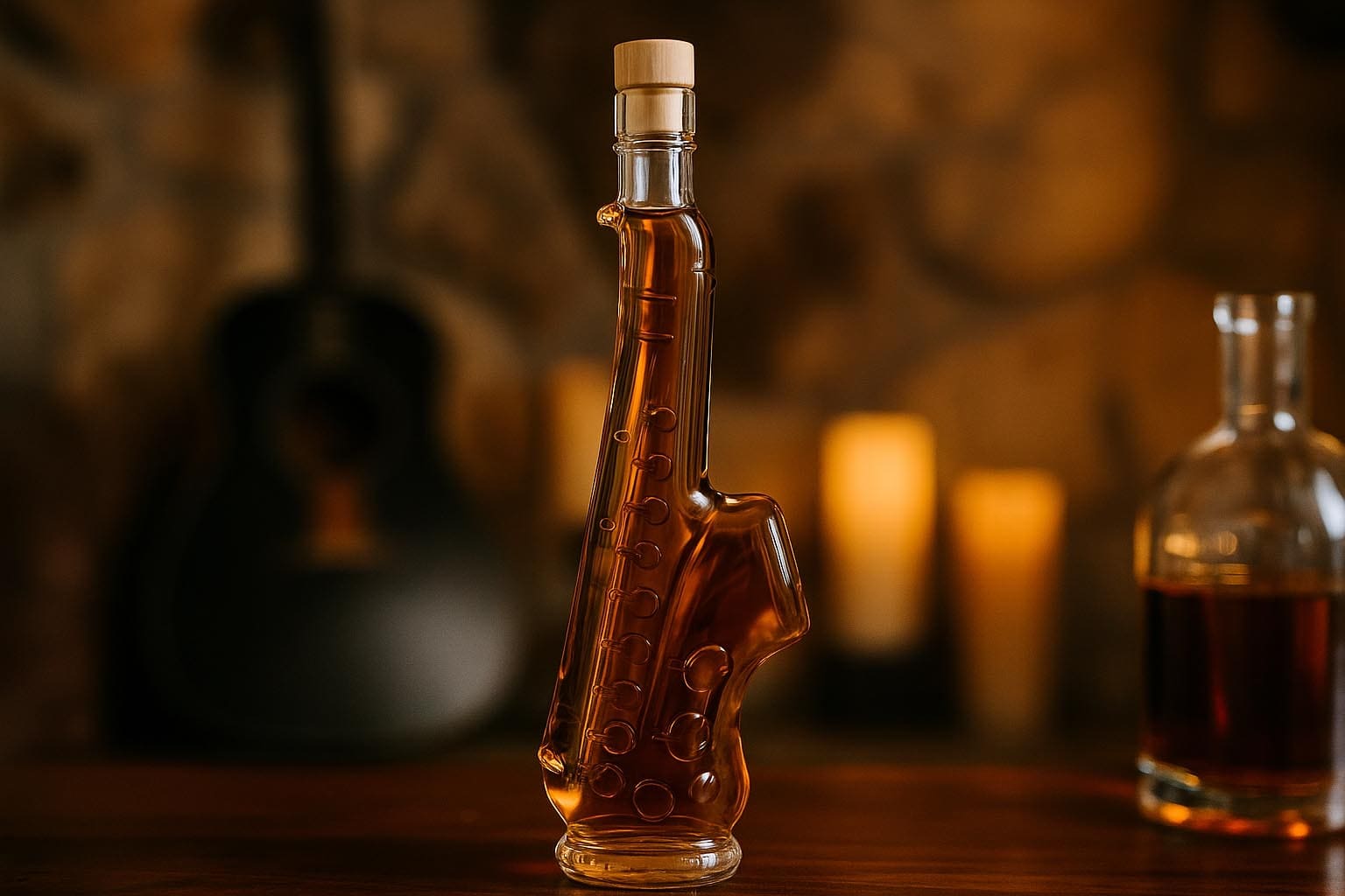 De motieffles „Saxofoon“ combineert kunstzinnig design met hoogwaardig glas en brengt muzikale passie in een stijlvolle vorm. Haar gebogen silhouet en gedetailleerde afwerking maken het tot een uitzonderlijke blikvanger. Of het nu als cadeau voor jazzliefhebbers is of als decoratieve fles voor exclusieve sterke dranken – het zet bijzondere accenten en geeft elke inhoud een unieke toets.