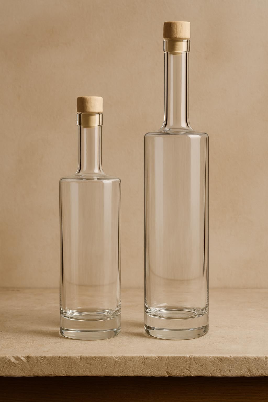 De serie "Titano" combineert een krachtige aanwezigheid met verfijnde eenvoud en stelt nieuwe normen in de wereld van hoogwaardige glazen verpakkingen. Deze elegante cilindervormige fles van helder glas valt op door een massieve glazen bodem, die niet alleen stabiliteit biedt, maar ook visuele diepte en exclusiviteit uitstraalt. Verkrijgbaar in de maten 500 en 700 ml, is "Titano" perfect geschikt voor hoogwaardige gedistilleerde dranken, verfijnde likeuren en karaktervolle distillaten. De kurkafsluiting zorgt voor een klassieke en veilige verzegeling – bijpassende sluitingen zijn verkrijgbaar in ons assortiment. Met zijn robuuste elegantie en tijdloze esthetiek is "Titano" de ideale keuze voor veeleisende merken die waarde hechten aan kwaliteit en expressiviteit.