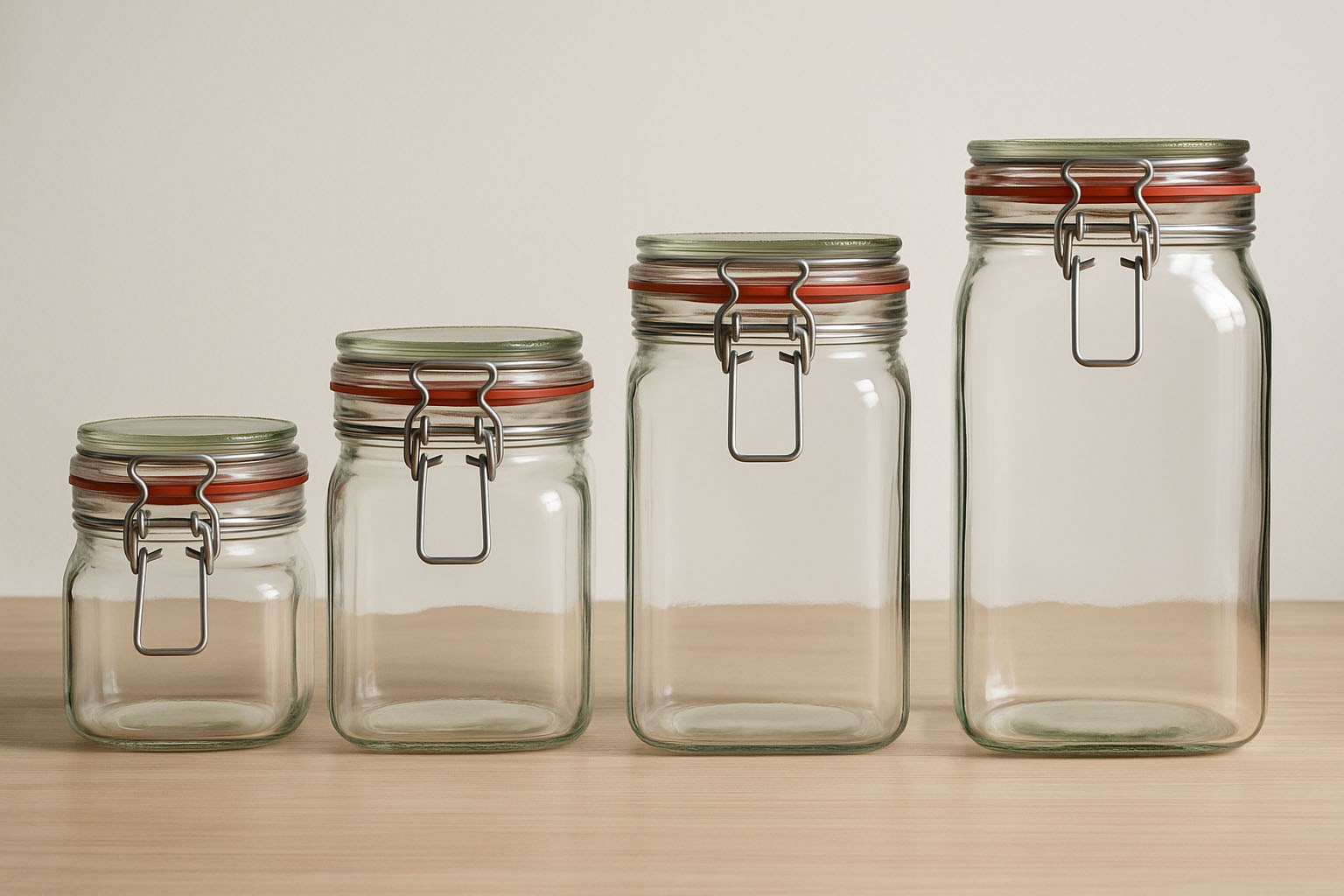 De beugelflessen zijn ideaal geschikt voor het inmaken en conserveren van huisgemaakte specialiteiten zoals jam, chutneys of ingelegde groenten. Ook voor het bewaren van droge levensmiddelen zoals muesli, bloem of peulvruchten bieden ze een hygiënische en stijlvolle oplossing.