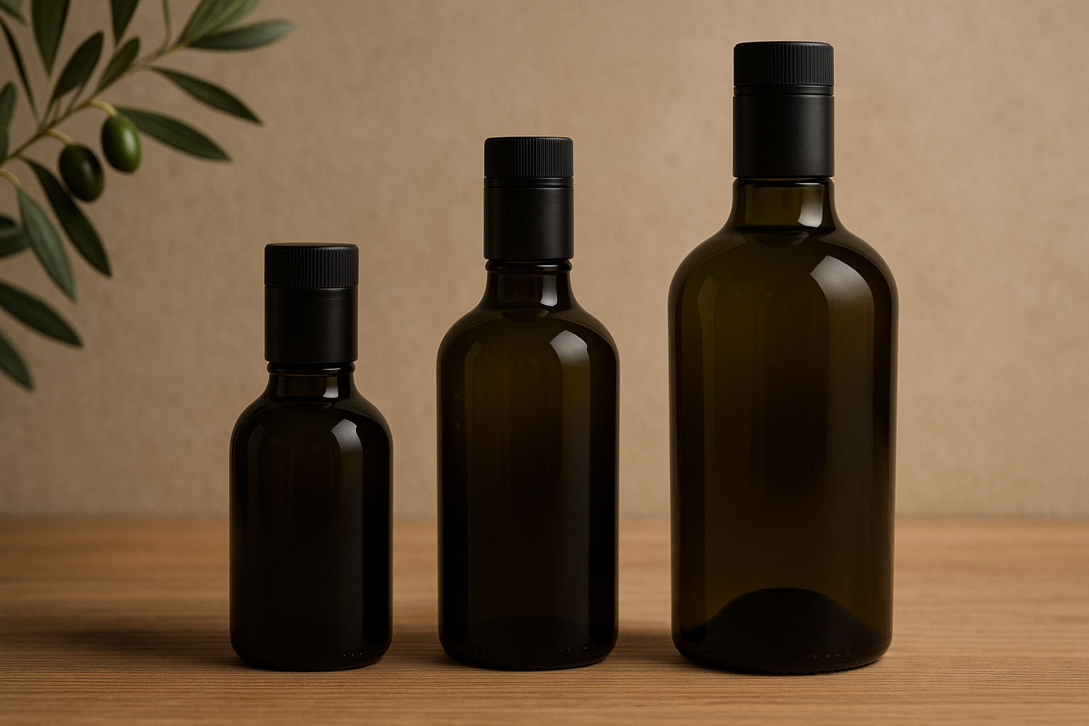 Flessenland 750 ml azijn-/olieflacon 'Biolio', glas, antiekgroen, mondstuk: DOP