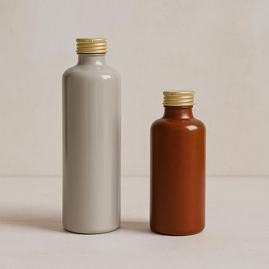 Flessenland 350 ml Tonbeker, steengoed, roodbruin, mondstuk: PP 31,5