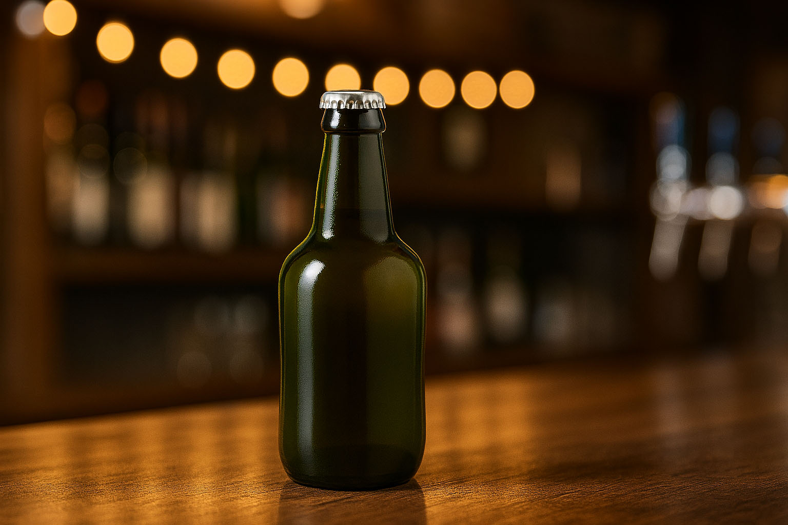 Flessenland 330 ml bierfles 'Era', glas, antiekgroen, hals: kroonkurk
