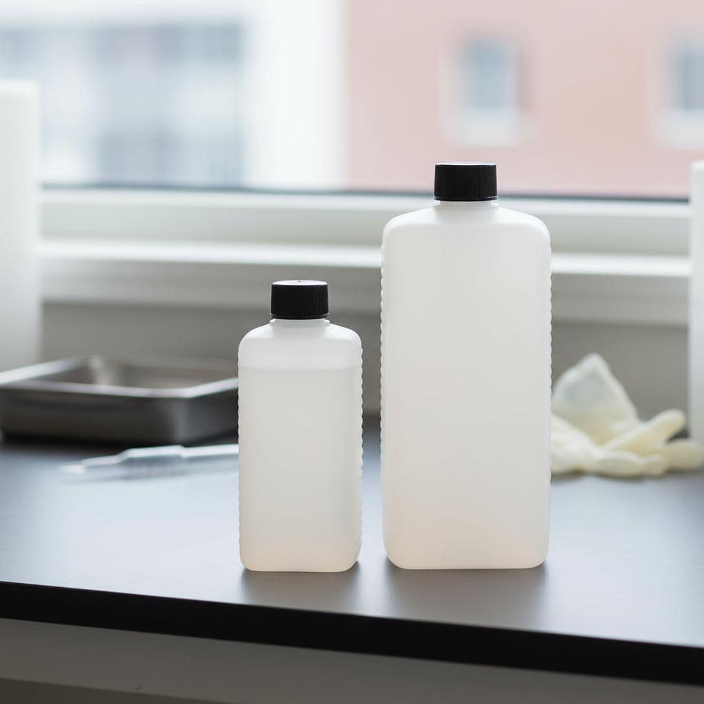 De productserie "PE-vierkante fles" van Flaschenland omvat hoogwaardige, rechthoekige kanisterflessen gemaakt van robuust HDPE-kunststof met een inhoud van 250 ml. Het belangrijkste kenmerk van deze flessen is hun koudbestendige en vaatwasserbestendige uitvoering, die veelzijdig en duurzaam gebruik garandeert. Deze kunststof containers onderscheiden zich door hun rechthoekige vorm en natuurlijke kleur, wat praktisch gebruik en ruimtebesparende opslag mogelijk maakt. De flessen zijn voorzien van een DIN 25 EPE-mondstuk, dat een veilige en lekvrije sluiting garandeert. Het gebruikte HDPE-materiaal biedt hoge bestendigheid tegen chemicaliën en mechanische invloeden, waardoor de flessen ideaal zijn voor diverse toepassingen. De PE-vierkante flessen zijn uitstekend geschikt voor het bewaren van vloeistoffen.