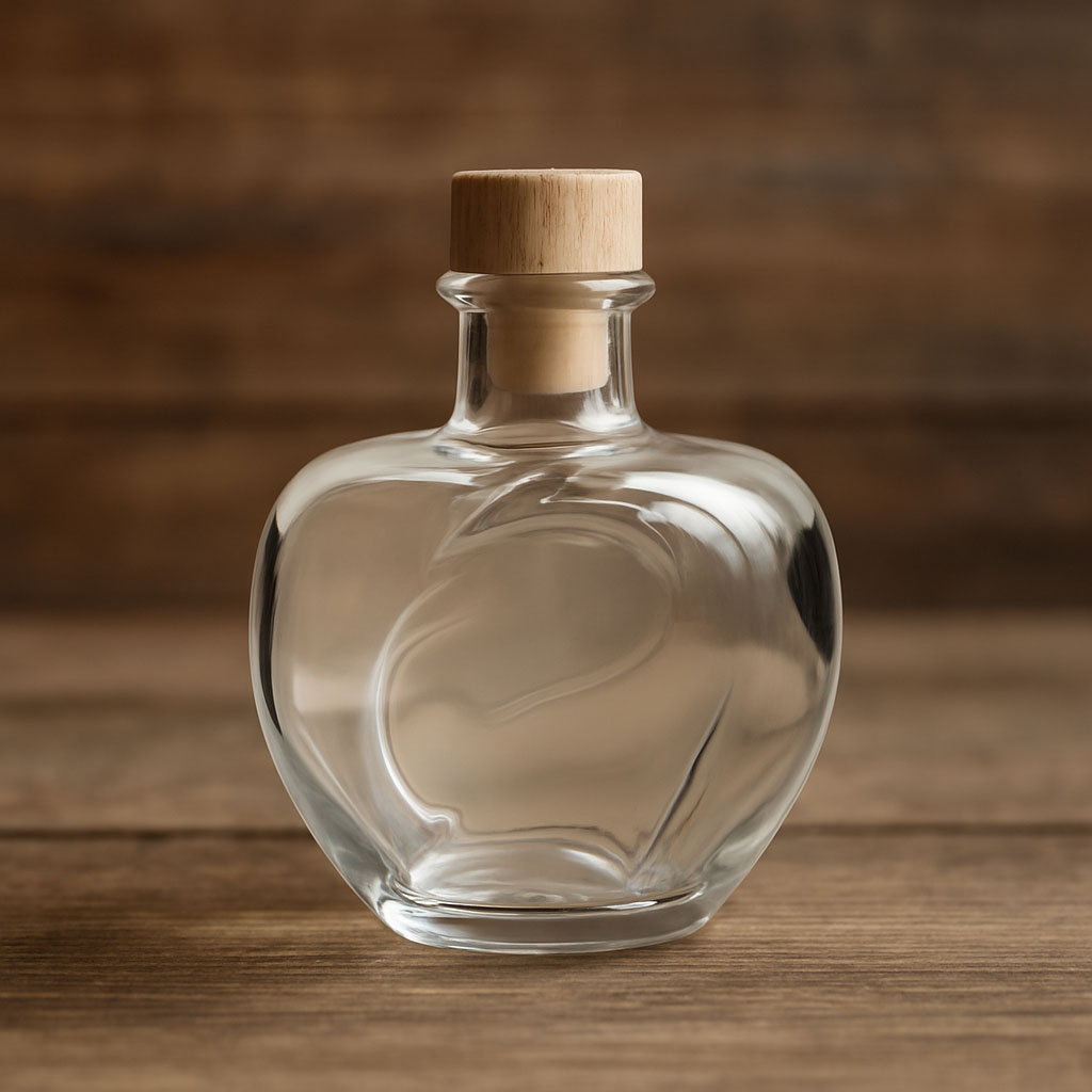 De motieffles „Appel“ overtuigt met zijn unieke, appelvormige ontwerp en is de perfecte keuze voor verfijnde fruitbrandewijnen en likeuren. Het gedetailleerde design van hoogwaardig helder glas benadrukt het natuurlijke karakter van de inhoud en maakt het een echte blikvanger. De kurkafsluiting zorgt voor een stijlvolle en veilige verzegeling, terwijl de harmonieuze vorm de waarde van het product benadrukt.