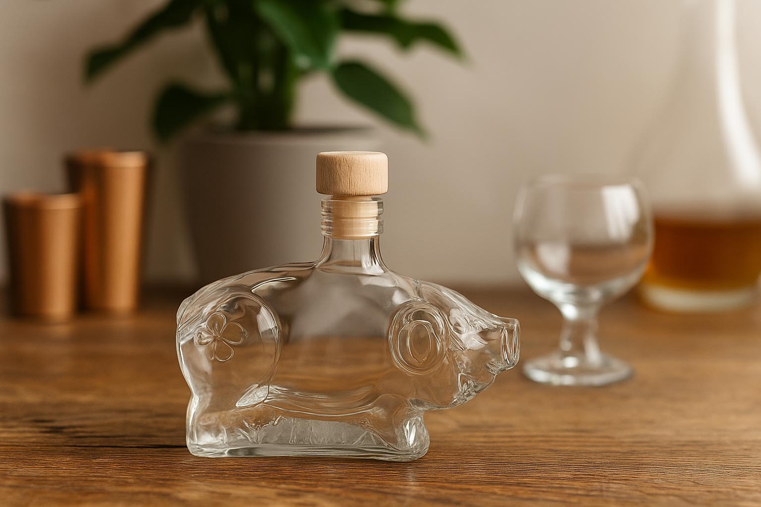 Onze diverse speciale vormflessen zoals "Eva" en "Adam", „Geluksvarkentjes“, "Kerstboom" en „Peperkoekman“ belichamen tijdloze elegantie en zetten de norm op het gebied van kwaliteit en design. Elke fles valt op door een karakteristiek, vaak liefdevol vormgegeven motief en een hoogwaardige afwerking die zowel professionele gebruikers als particuliere klanten met gevoel voor esthetiek weet te overtuigen. De flessen zijn verkrijgbaar in verschillende maten van 40 ml tot 500 ml en bieden met kurk-, PP- of beugelsluiting een stijlvolle oplossing voor de veilige en luchtdichte opslag van gedistilleerde dranken, likeuren en andere dranken.