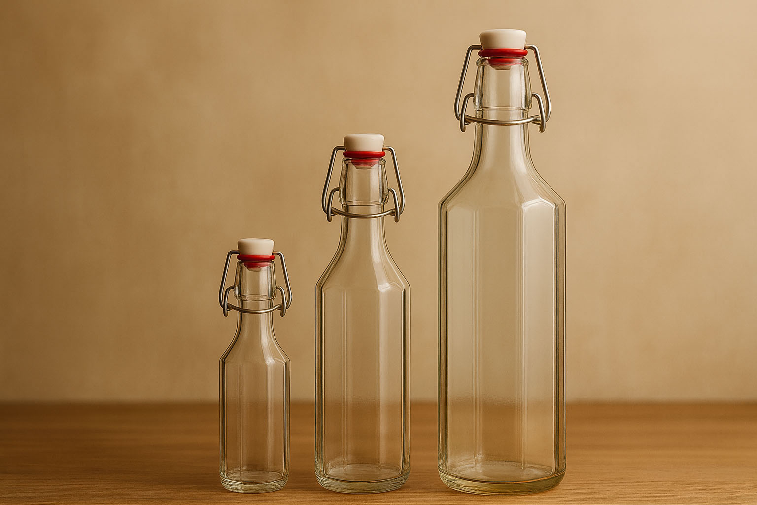 De serie „Bravo“ overtuigt met zijn markante, tienhoekige vorm die elegantie en functionaliteit combineert. Gemaakt van hoogwaardig helder glas, zet deze bijzondere fles de inhoud stijlvol in de schijnwerpers. Verkrijgbaar in inhoudsmaten van 250 tot 1000 ml, biedt „Bravo“ de perfecte oplossing voor diverse dranken. Dankzij de praktische beugelsluiting, waarvoor passende doppen in ons assortiment beschikbaar zijn, combineert hij een traditioneel sluitingssysteem met moderne esthetiek.