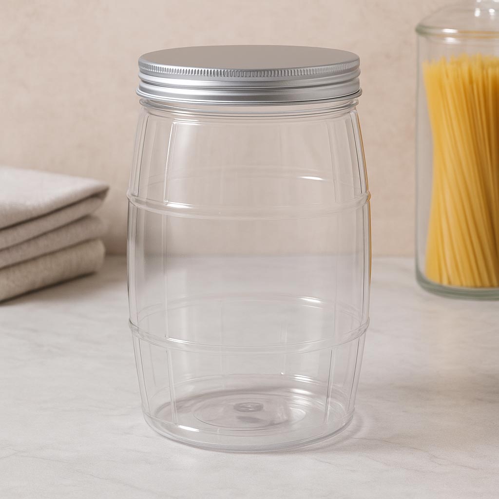 De PET-doos "Vat" combineert een uniek ontwerp met praktische functionaliteit en biedt een gedetailleerde nabootsing van een klassiek houten vat. Met een inhoud van 1,5 liter is hij ideaal voor het bewaren van diverse producten, van levensmiddelen tot decoratieve items. De ruime opening 100/400 maakt eenvoudig vullen en veilig sluiten mogelijk – bijpassende deksels zijn verkrijgbaar in ons assortiment. Dankzij het lichte, onbreekbare PET-materiaal is de doos niet alleen visueel een blikvanger, maar ook bijzonder duurzaam en veelzijdig inzetbaar.