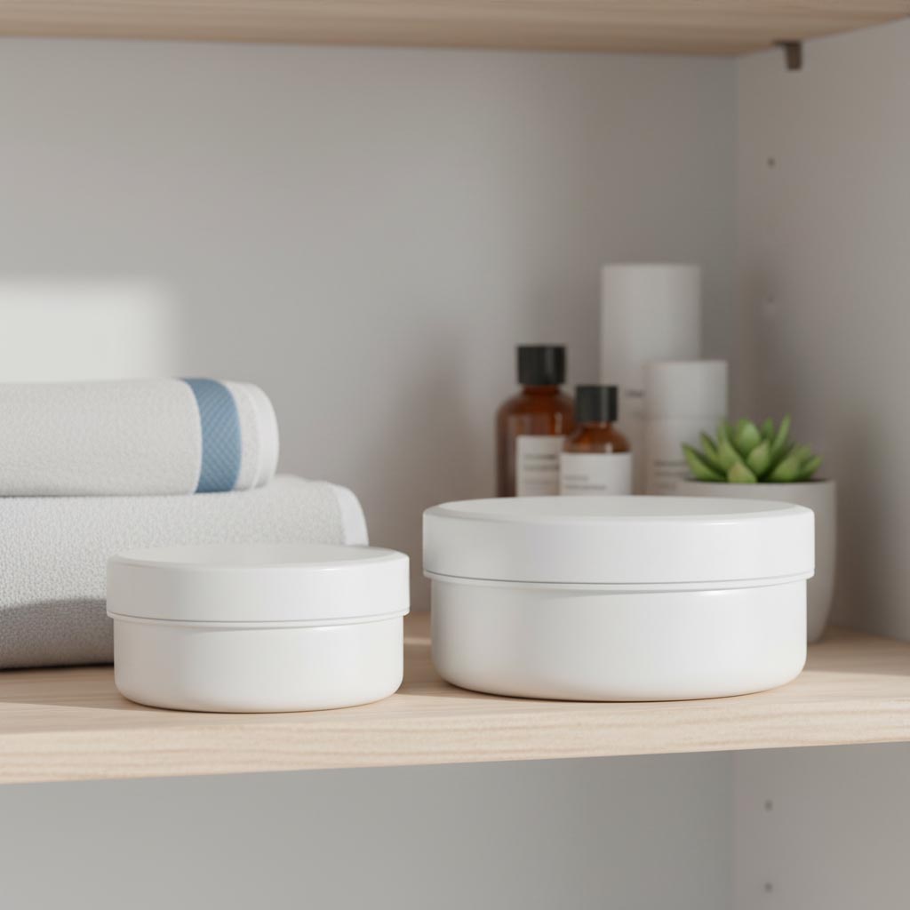 De productserie "White Line" van Flaschenland omvat hoogwaardige 12 ml kunststofpotten gemaakt van stevig polypropyleen (PP) in elegant wit, voorzien van een praktische schroefdop. Deze containers zijn speciaal ontworpen voor het veilige en hygiënische bewaren van crèmes en cosmetische producten. De kunststofpotten van de "White Line" onderscheiden zich door hun koudebestendige, UV-bestendige en vaatwasmachinebestendige eigenschappen, wat veelzijdig en duurzaam gebruik mogelijk maakt. Het materiaal polypropyleen zorgt voor stabiliteit en bescherming tegen omgevingsinvloeden, terwijl de compacte maat van 12 ml ideaal is voor kleine hoeveelheden of monsters. De ronde vorm en de witte kleur geven de potten een professionele en aantrekkelijke uitstraling.