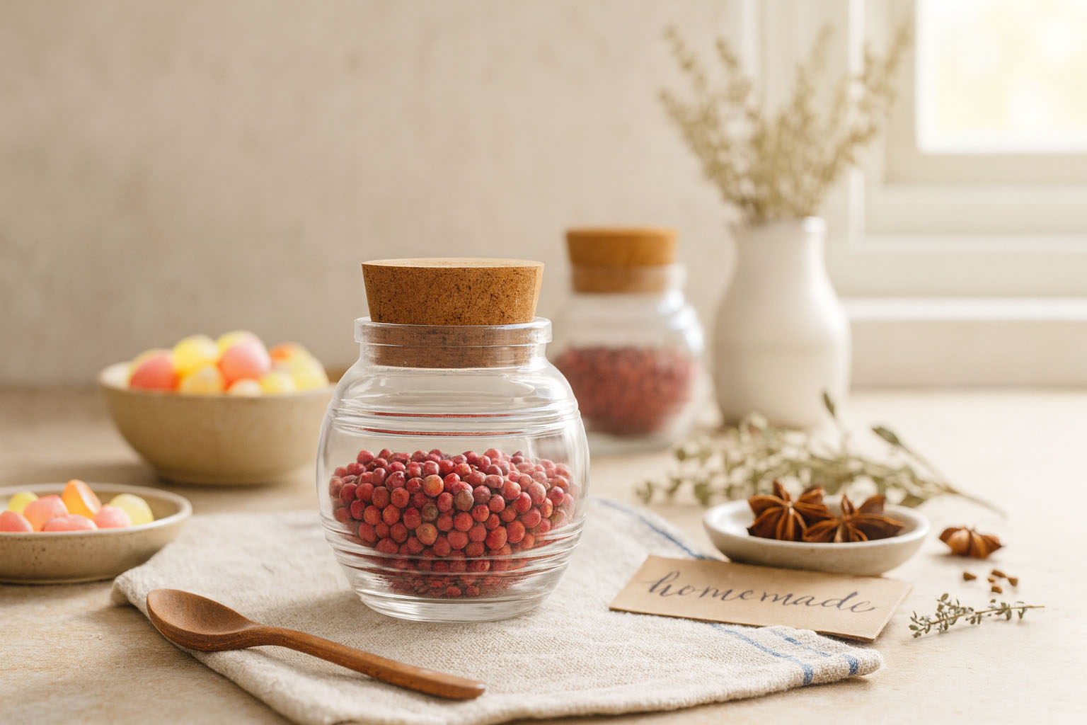 De serie "Jule" combineert esthetische elegantie met praktische functionaliteit en biedt een stijlvolle oplossing voor het bewaren van kruiden, snoepjes en andere fijne lekkernijen. Het bolvormige kurkenglas valt op door zijn zacht afgeronde vorm en het karakteristieke streepreliëf, dat het een bijzondere tactiliteit en een nostalgische charme geeft. De ronde basis zorgt voor een harmonieuze uitstraling, terwijl de kurkopening een veilige en natuurlijke afdichting mogelijk maakt. Jule is niet alleen een praktisch bewaarglas, maar ook een decoratief hoogtepunt dat in elke keuken of op elke tafel accenten zet.