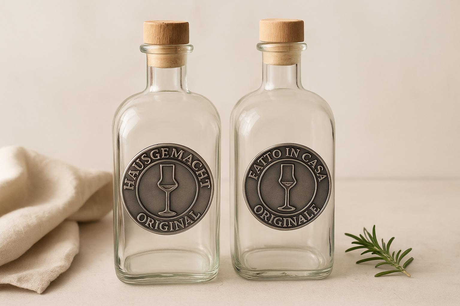 Flessenland Tinlabel 'Hausbrennerei', rond, metaal, zilver